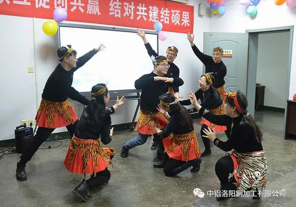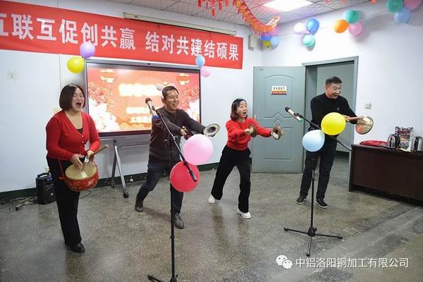 洛陽銅加工財務(wù)總監(jiān)兼檢測公司董事長朱盤根,總經(jīng)理助理諸捷等領(lǐng)導(dǎo)來到現(xiàn)場與職工們歡聚一堂,共賞節(jié)目。